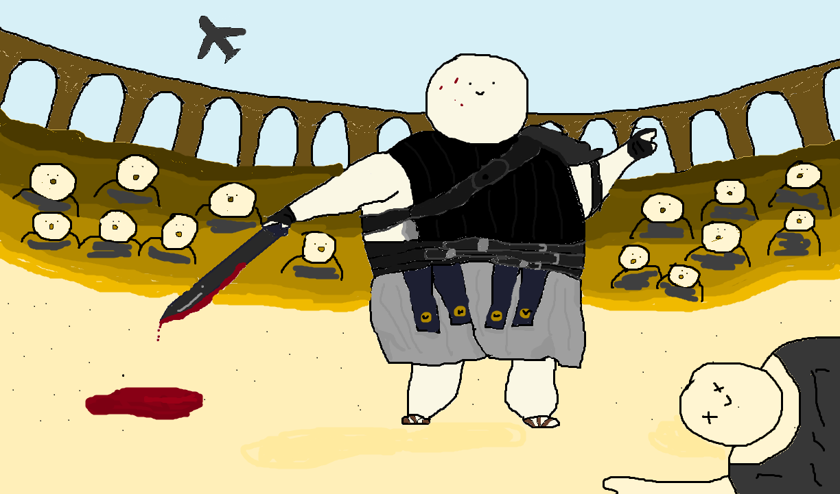 W świecie pełnym potężnych gladiatorów, jeden wyróżniał się szczególnie – Grubol! Nie tylko jego miecz miał poważną wagę, ale i on sam wchodził na arenę z charakterystycznym chrupnięciem piasku pod sandałami.